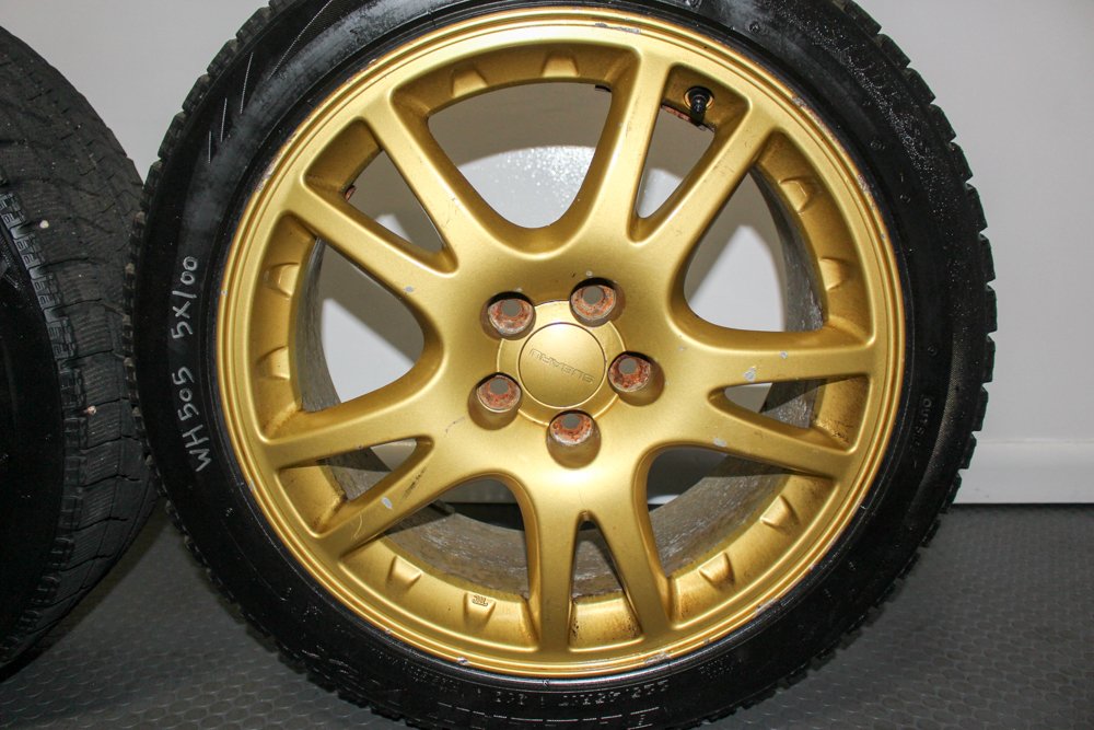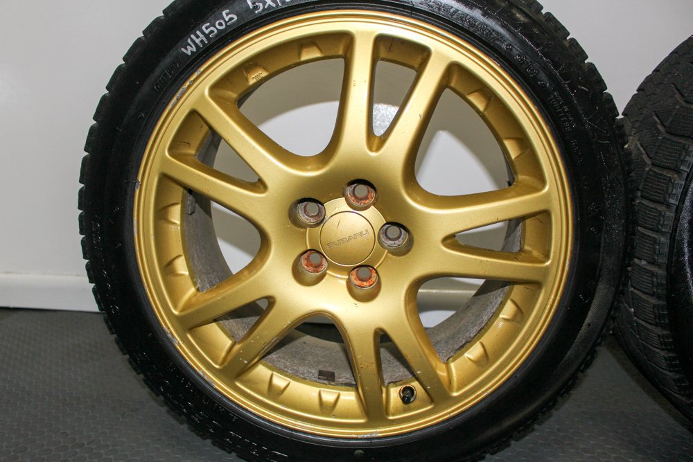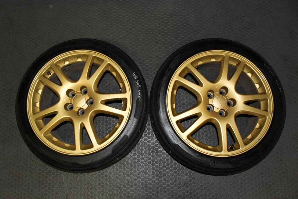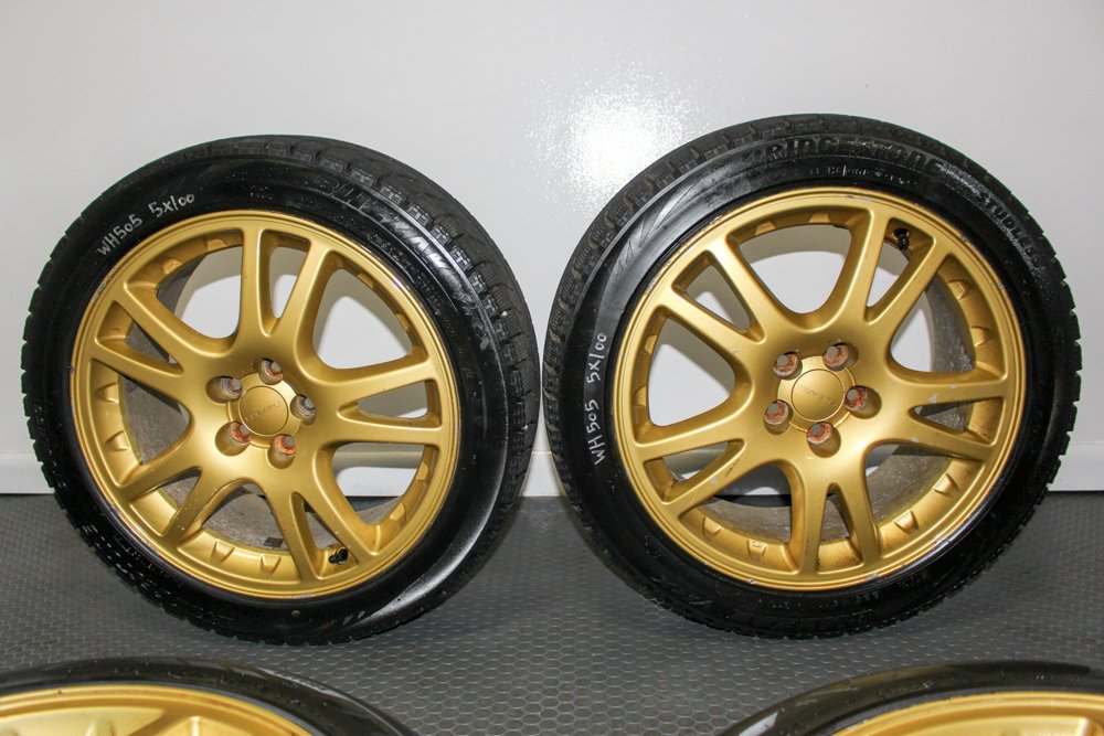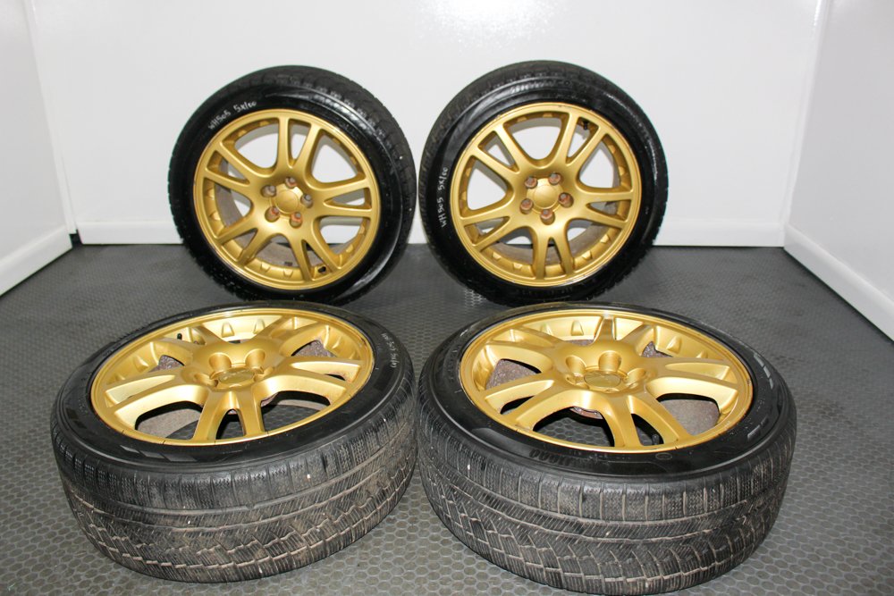 Up for sale is a set of four Gold Enkei 5×100 Wheels with Brembo clearance. These are light weight wheels from a version JDM STI.